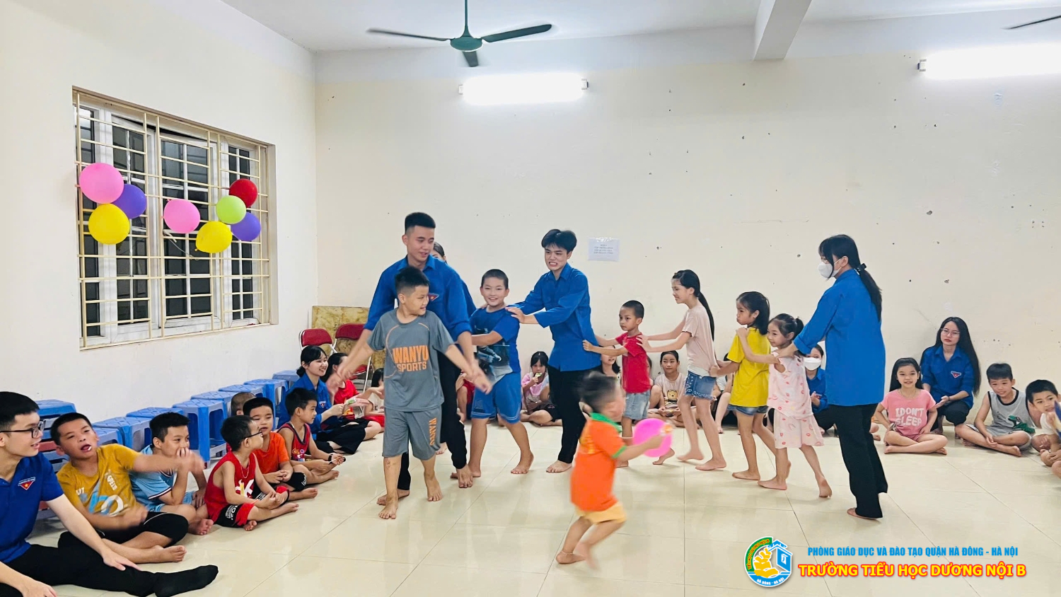 Hình ảnh CBGVNV phối hợp với Chính quyền địa phương và các ban ngành đoàn thể tham gia vệ sinh môi trường, tổ chức sinh hoạt hè, biểu diễn văn nghệ, hướng dẫn người dân cài đặt ứng dụng VNeID