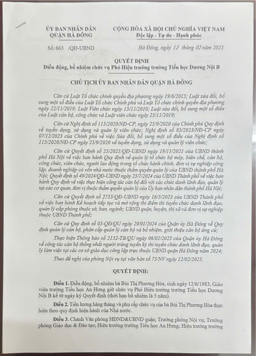 Trường Th Dương Nội B chào đón cô Bùi Thị Phương Hòa phó hiệu trưởng nhận công tác