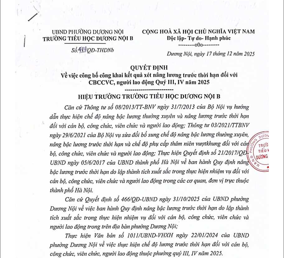 Công khai kết quả xét nâng lương trước thời hạn Quý 3,4 năm 2025